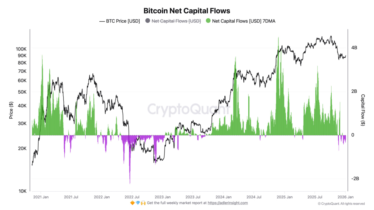 Analist Axel Adler, 26 Aralık–3 Ocak döneminde genel sermaye akışlarının negatif seyrettiğini, yani gerçekleşen zararların kârların önüne geçtiğini gözlemledi. Ancak hafta sonunda sermaye akışları zayıf bir şekilde pozitif hale geldi ve bu durum, gerçekleşen kârların zararlardan biraz daha ağır bastığını gösterdi. Glassnode verileri de son yükselişin bu değişimle uyumlu olduğunu doğruladı.