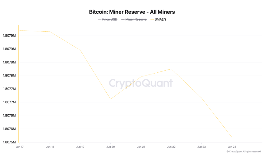 CryptoQuant verilerine göre, Bitcoin madenci rezervi yedi günlük hareketli ortalamada %0,022 oranında azaldı. Bu düşüş, madencilerin ellerindeki coin’leri satışa hazırladığını ortaya koyuyor.