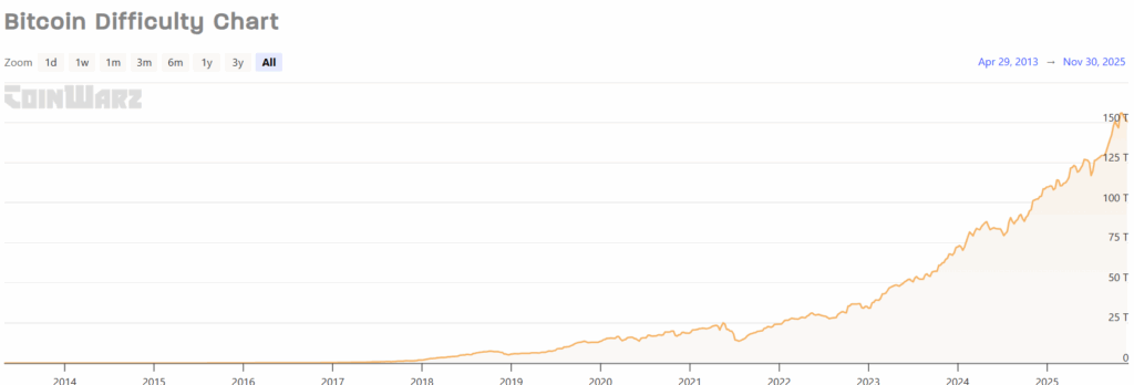 Zorluk, ağdaki toplam hesaplama gücüne bağlıdır. Daha fazla madenci ve güçlü donanım eklenirse, blok bulmak kolaylaşır; ağ zorluğu artırır.