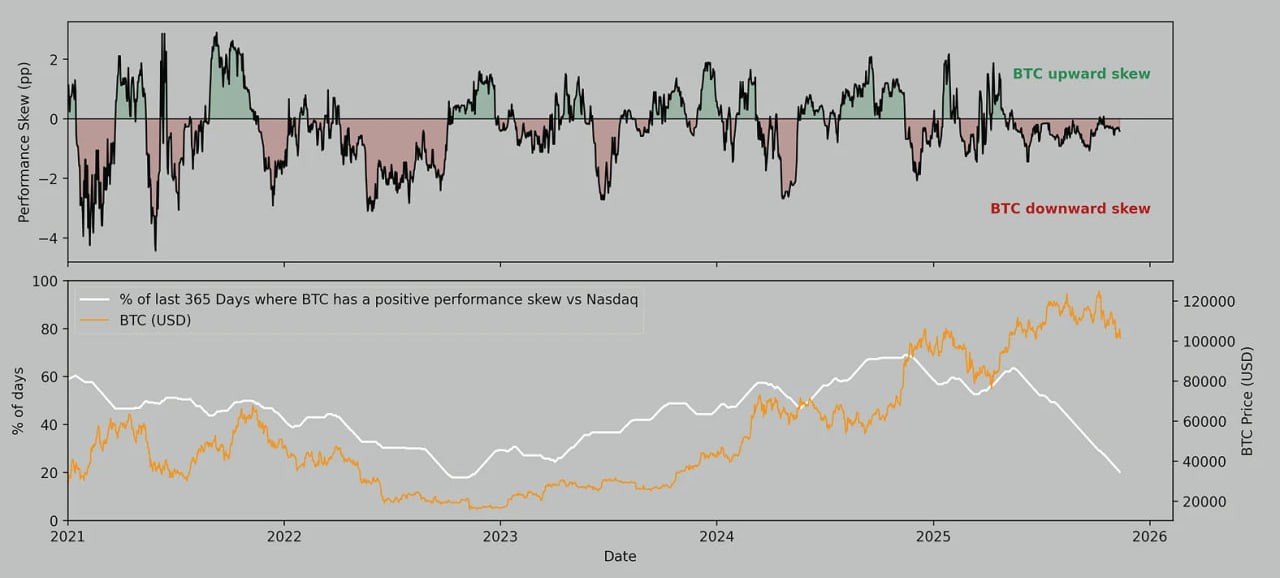 Bu nedenle Bitcoin, risk ortamı bozulduğunda hâlâ sert tepki veriyor; fakat risk iştahı geri geldiğinde yatırımcılar ilk olarak kriptoya dönmek yerine teknoloji hisselerine yöneldiği için BTC toparlanmada gecikiyor. Yani Bitcoin, risk algısı bozulduğunda “yüksek beta teknoloji varlığı” gibi davranıyor; iyimserlik döndüğünde ise aynı oranda fayda sağlayamıyor.