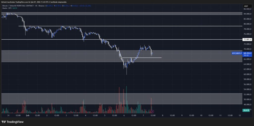 Son haftalardaki tepki alımları, balinalar için bir dönüş sinyali değil; aksine dağıtım için uygun bir likidite penceresi yarattı. Bireysel yatırımcının “dipten alım” umudu, bu süreçte satışları karşılayan ana kaynak haline geldi. Bu da “bitcoin neden düşüyor” sorusunun zincir içi cevabını netleştiriyor: satış baskısı sürüyor, iyimserlik ise tam çözülmedi. 63.007 dolar destek, 71.672 dolar kısa vadeli direnç olarak izleniyor. Mevcut yükselişler şimdilik kalıcı dönüş sinyali üretmiyor.