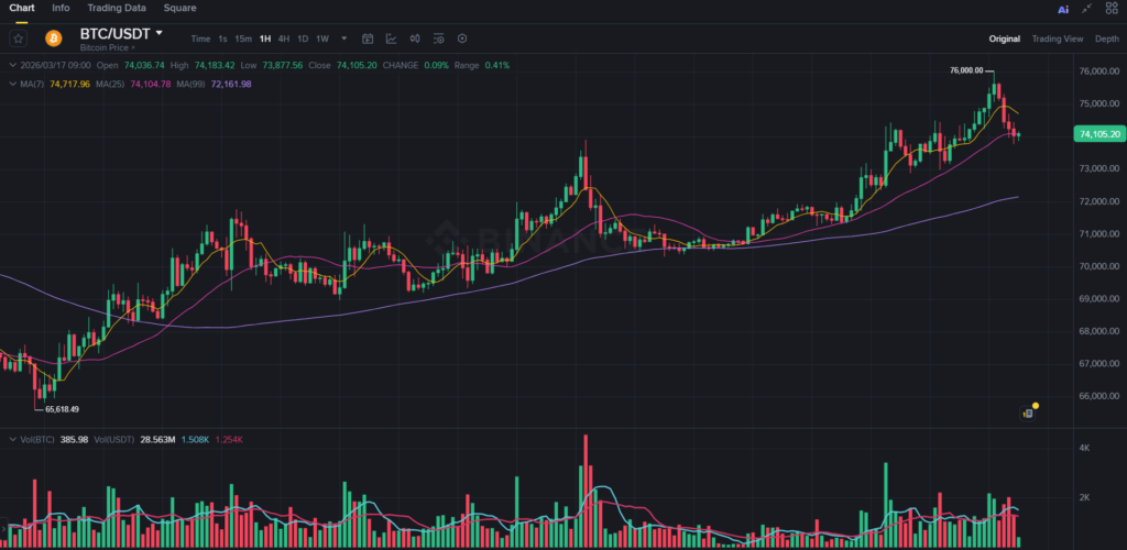 Bitcoin, 17 Mart 2026 Salı günü kritik 75.000 dolar barajını aşıp 75.800 dolara kadar uzanan sert bir yükseliş gerçekleştirdi. Yatırımcılar “Bitcoin neden yükseldi?” sorusunu soruyor ve yanıt netleşiyor: yükseliş, türev piyasalarındaki kısa pozisyonların tasfiyesi ve devasa kurumsal alımların birleşimiyle şekillendi. BTC, bu yıl birkaç kez yükselişleri sınırlayan 74.400 dolarlık uzun vadeli direnç bölgesini de böylece ikna edici bir şekilde kırmış oldu.