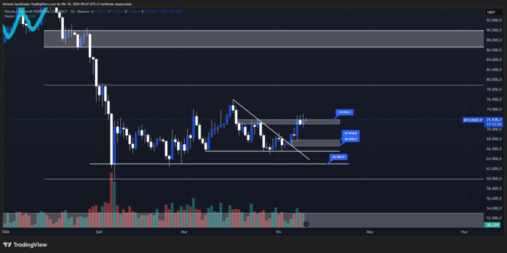 Bitcoin’in yeni bir yükseliş trendine girebilmesi için 73.000 dolar seviyesini güçlü şekilde kırıp kalıcı destek haline getirmesi gerekiyor.