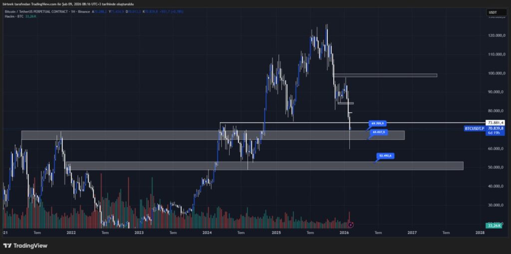 Coinmühendisi analistimiz ise, Bitcoin’in tüm zaman dilimlerinde düşüş trendine girdiğini ve haftalık kapanışın 74.000 doların altında gerçekleşmesinin bearish bir onay olduğunu söyledi. Analiste göre, yeni majör destek bölgesi 52.500 dolar civarında oluşacak. Bu seviyeye kadar geri çekilmeler normal karşılanmalı.