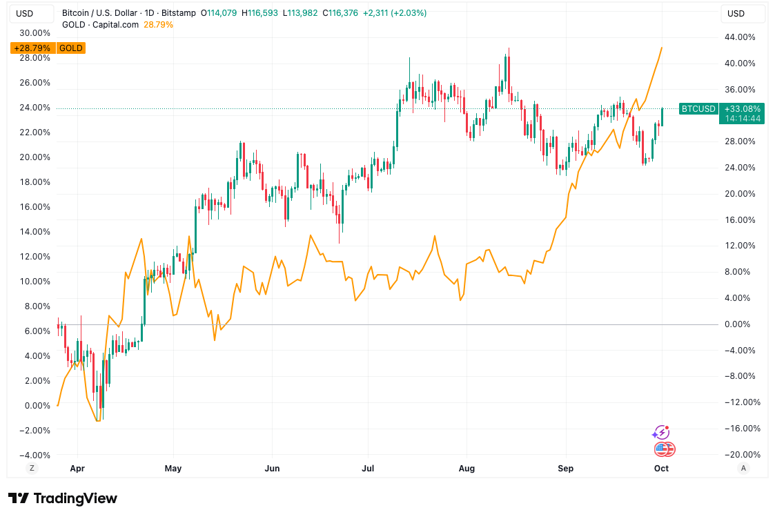 Bitcoin’in son yükselişi, altının bir kez daha tüm zamanların en yüksek seviyesini görmesiyle aynı döneme denk geldi. Değerli metal, ons başına 3.895 dolara ulaştı.