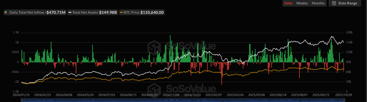 Kripto piyasalarında volatilitenin arttığı bir dönemde, spot Bitcoin ETF’lerinden yaşanan 470,71 milyon dolarlık çıkış, yatırımcı duyarlılığındaki zayıflamaya işaret etti. ABD’de işlem gören 12 farklı Bitcoin spot ETF’sinin tamamı aynı gün net çıkış kaydetti bu, Temmuz 2024’ten bu yana görülen en geniş çaplı çıkış günlerinden biri olarak değerlendiriliyor. Analistler, bu düşüşün olası nedenleri arasında FED faiz politikası belirsizliklerini, dolar endeksindeki güçlenmeyi ve kripto varlıklarda kısa vadeli kar realizasyonlarını gösteriyor.