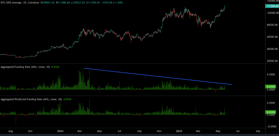 Bu veri, piyasadaki mevcut yatırımcı profilinin oldukça sabırlı ve uzun vadeli düşünmeye devam ettiğini gösteriyor. Aynı zamanda, BTC fiyatında hala güçlü bir yukarı yönlü potansiyel olduğunu destekliyor. Analistlere göre Bitcoin’in yükselişi, geçmiş dönemlerde olduğu gibi kaldıraçlı pozisyonlardan değil, spot alımlardan kaynaklanıyor. Vadeli işlemler piyasasında fonlama oranları düşük seviyelerde. Bu, yatırımcıların aşırı risk almadığını ve fiyat hareketlerinin daha organik olduğunu gösteriyor.