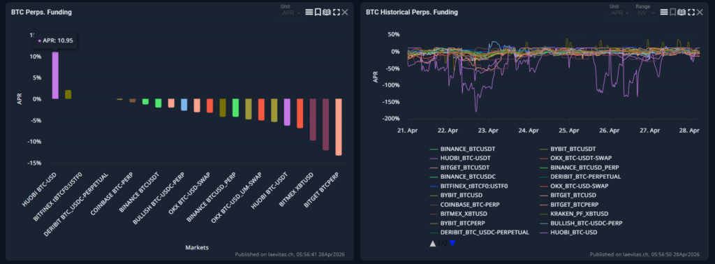 Ancak vadeli işlemler tarafında dikkat çeken başka bir veri var. Bitcoin perpetual futures funding rate son iki haftadır çoğunlukla negatif kalıyor. Bu durum, yatırımcıların düşüş beklentisiyle short ağırlıklı pozisyon aldığını gösteriyor.