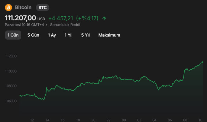 Yaklaşık iki hafta önce cuma günü 102 bin dolara kadar düşen Bitcoin, ardından gelen kısa toparlanmalarla dengelenmişti. Ancak üç gün önce yeniden 103.500 dolar seviyelerine gerileyen BTC, hafta sonu boyunca güçlü alımların etkisiyle toparlanarak yeniden 111 bin dolar bandına yükseldi.