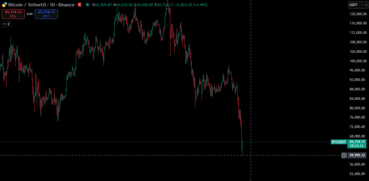 Kripto para piyasasında satış baskısı sertleşirken, Bitcoin fiyatı 63.000 dolar seviyesinin altına gerileyerek Ekim 2024’ten bu yana en düşük seviyelerini gördü. Gün içinde yüzde 14’e varan düşüşle 59.995 dolara kadar gerileyen Bitcoin, piyasalarda artan volatiliteyi ve riskten kaçış eğilimini net şekilde yansıttı. Bu sert geri çekilme ile birlikte, Donald Trump’ın seçim zaferinin ardından başlayan yükseliş sürecinde elde edilen tüm kazançlar silinmiş oldu, yatırımcı duyarlılığı ise belirgin şekilde zayıfladı.