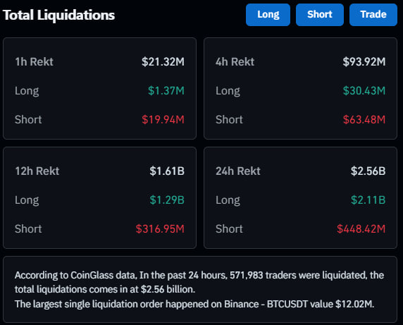 • Son 24 saatte toplam tasfiye: 2,56 milyar dolar