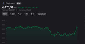 Ethereum (ETH) ise aynı dönemde öne çıktı. Son 30 günde yaklaşık %24 yükseliş kaydederek 4.475 dolar civarında işlem görüyor ve Bitcoin’den daha iyi performans gösteriyor.