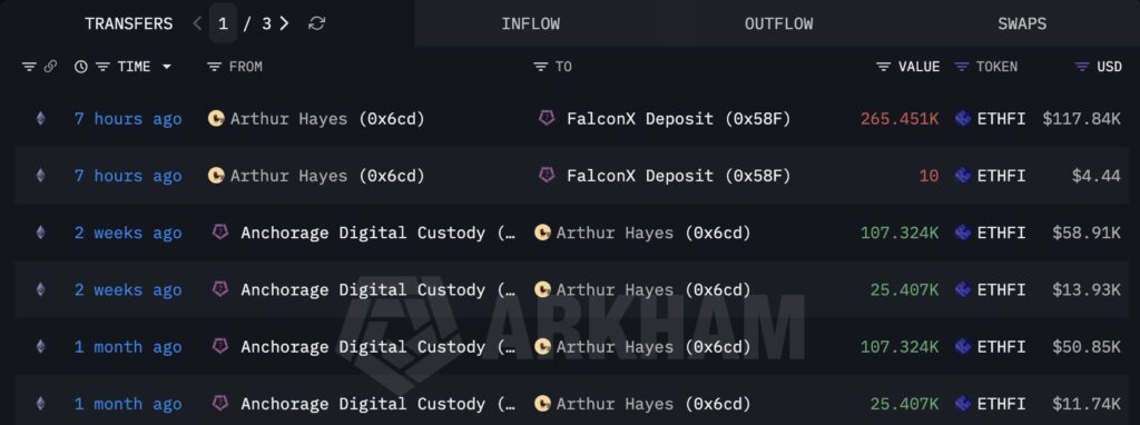 On-chain analiz platformu Lookonchain’in verilerine göre, Hayes ETHFI tokenlerini yüksek fiyattan alıp düşük fiyattan sattı.