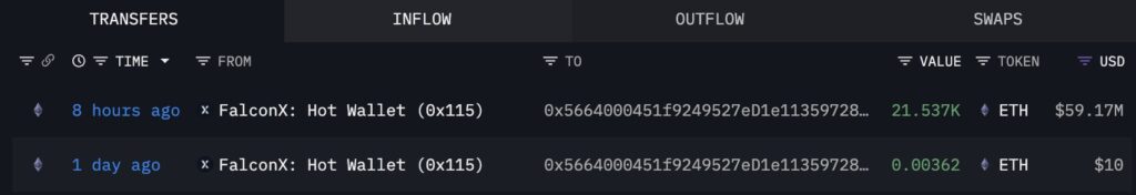 İşlem Zamanı Gönderen (FalconX) Alan (Bitmine ile İlişkili) Miktar (ETH) Değer (USD)