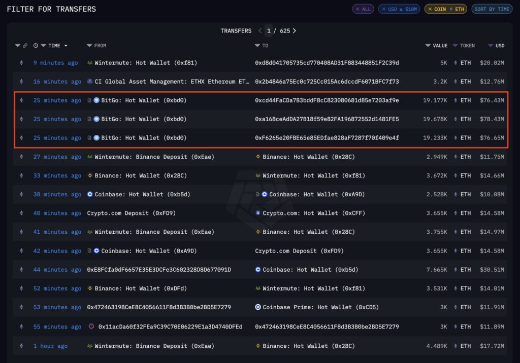 Arkham ise, her bir cüzdanın yaklaşık 75 milyon dolarlık ETH aldığını doğruladı. Satın alma kalıpları, BitMine’ın BitGo’dan yaptığı önceki işlemlerle tamamen örtüşüyor.