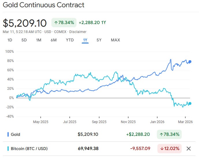 Altın fiyatı Ocak ayının sonlarında ons başına 5.600 dolar ile tarihi zirveye ulaşırken, Bitcoin halen geçen yılın Ekim ayında görülen zirvesinin yaklaşık %44 altında işlem görüyor.