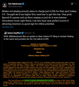 Bloomberg Kıdemli ETF Analisti Eric Balchunas, Bitwise’ın kararını “yatırımcı dostu bir hamle” olarak nitelendirdi.