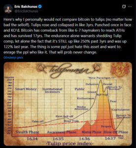 Analist, “Bitcoin 6-7 defa çok sert darbe aldı ama her seferinde geri döndü. Bu dayanıklılık bile lale benzetmesini geçersiz kılmaya yeter” diyerek karşılaştırmanın temelsiz olduğunu vurguladı.