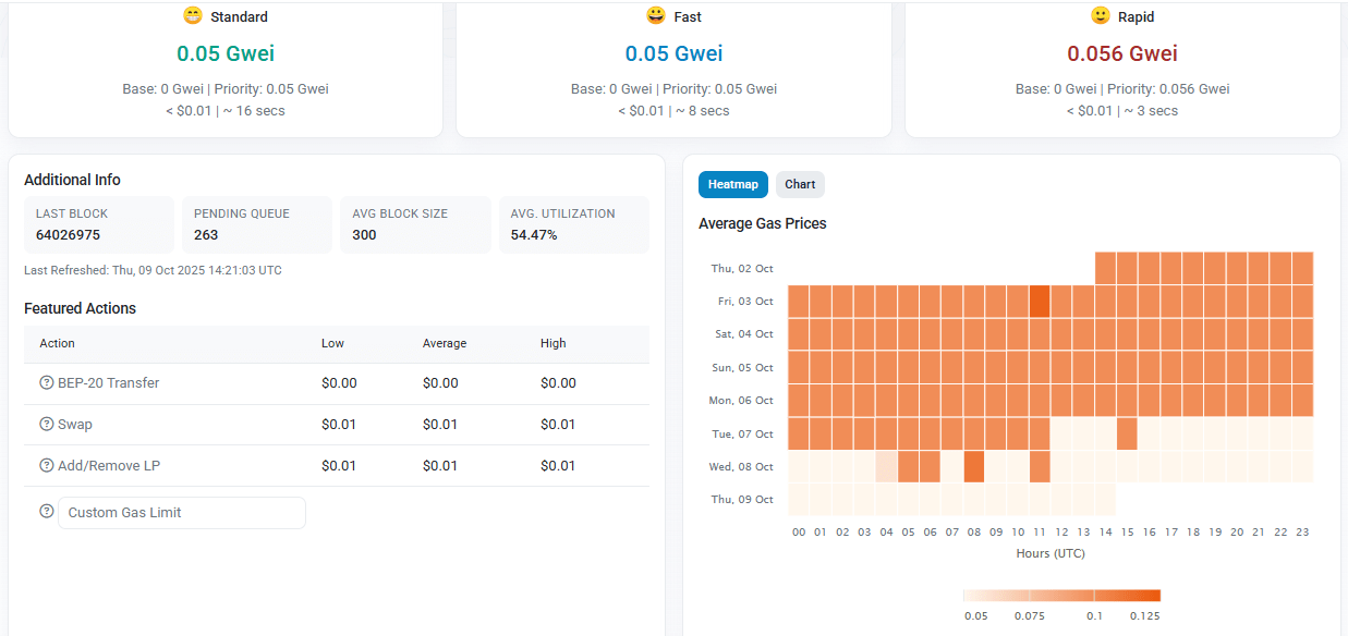 BNB Chain’in resmi Gas Tracker verilerine göre: