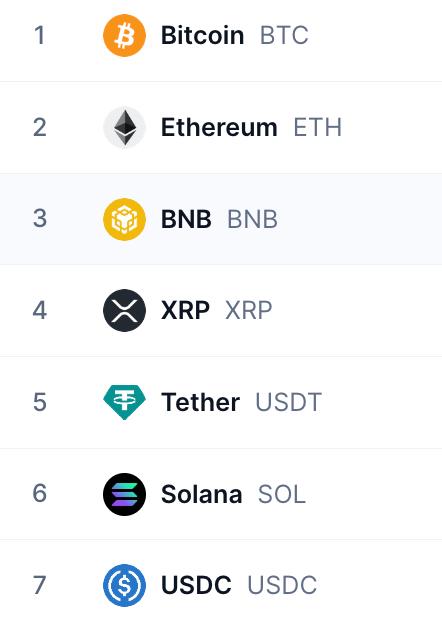 Son verilere göre piyasa değerine göre ilk 5 kripto para şu şekilde sıralanıyor: