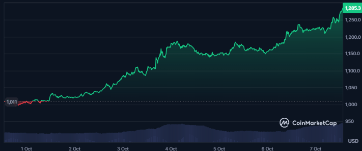 3. Binance Coin (BNB) – $1,282.09 fiyat, $178.44 milyar piyasa değeri