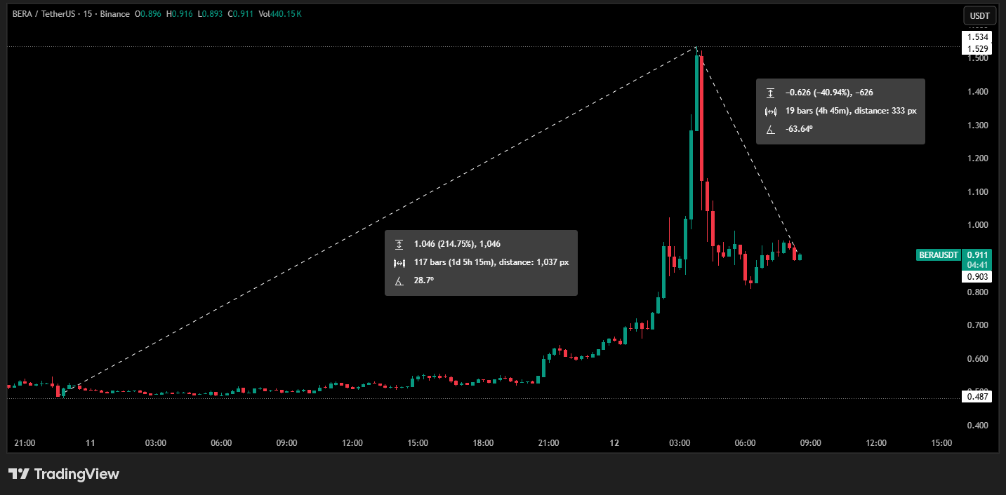 Son 24 saat içinde yaklaşık yüzde 80 değer kazanan BERA, 0,34 dolar seviyesindeki tüm zamanların en düşük (ATL) fiyatından 1,50 dolara kadar yükselerek toplamda yüzde 190’lık bir toparlanma kaydetti.