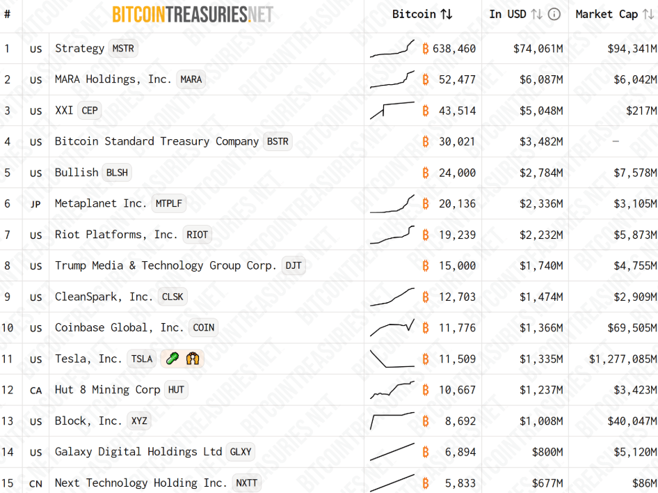 Şu anda şirketler, toplamda 1 milyon BTC’den fazla tutuyor. Bu miktar, yaklaşık 117 milyar dolara eşdeğer. Strategy, en büyük Bitcoin hazine sahibi olarak öne çıkarken, Mara Holdings ve diğer firmalar hızla büyüyor.