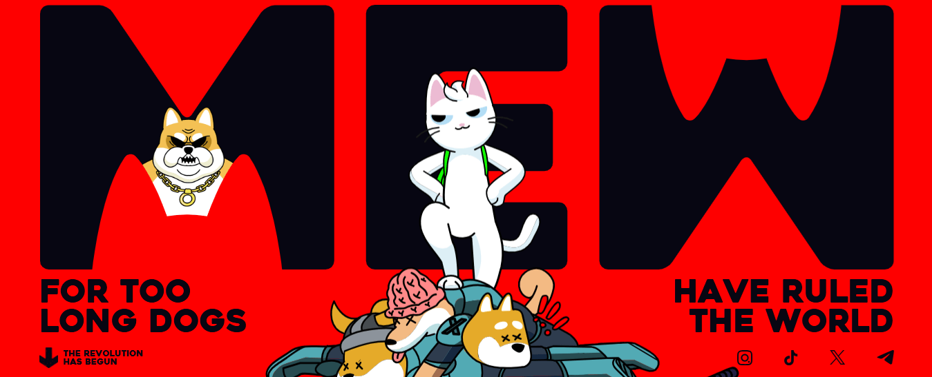 MEW’in hikayesi, herkesin bağ kurabileceği bir anlatıya dayanır: Kedilerin, köpeklerin yönettiği bir dünyada mücadele eden yalnız bir kedi olan MEW’in serüveni. Hikaye, MEW’in köpeklerin lideri Shibatoni ve onun yandaşlarını yenerek kötü niyetli SHIBEX şirketini devirmesi üzerine kuruludur. Bu eğlenceli ve yaratıcı anlatı, MEW’i diğer memecoin’lerden ayıran en önemli özelliklerden biridir.