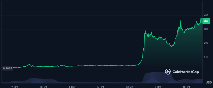 6 Ekim’de Aster borsasında 5x kaldıraçlı işlem desteğiyle listelenmesi ve 25 Eylül’de Bybit entegrasyonu COAI’nin işlem erişimini genişletti. Bu gelişmelerin ardından tokenin günlük işlem hacmi %1.200 artış göstererek 423 milyon dolara ulaştı. Bu durum, agresif spekülasyonların önünü açtı ve fiyatın hızla yukarı hareket etmesini sağladı.