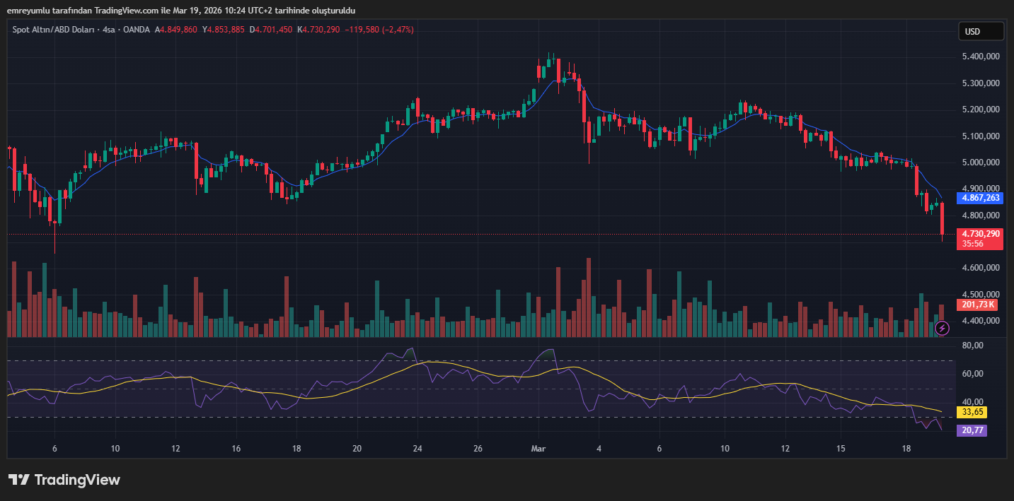 Her ne kadar uzun vadeli talep güçlü kalsa da, altın fiyatlarında kısa vadede bir geri çekilme gözlemleniyor. Yazının kaleme alındığı an itibarıyla altın, günlük bazda %1,80 düşüşle 4.730 dolar seviyesinde işlem görüyor. Aylık performans %2,90 negatif bölgede yer alırken, yılbaşından bu yana getirinin hâlâ %9,33 seviyesinde olması dikkat çekiyor. Bu tablo, kısa vadeli satış baskısına rağmen genel trendin tamamen bozulmadığına işaret ediyor.