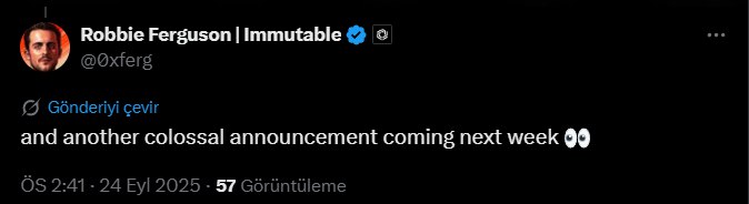 “Gelecek hafta Immutable ekosistemi için çok büyük bir duyuru yapacağız. Takipte kalın!”