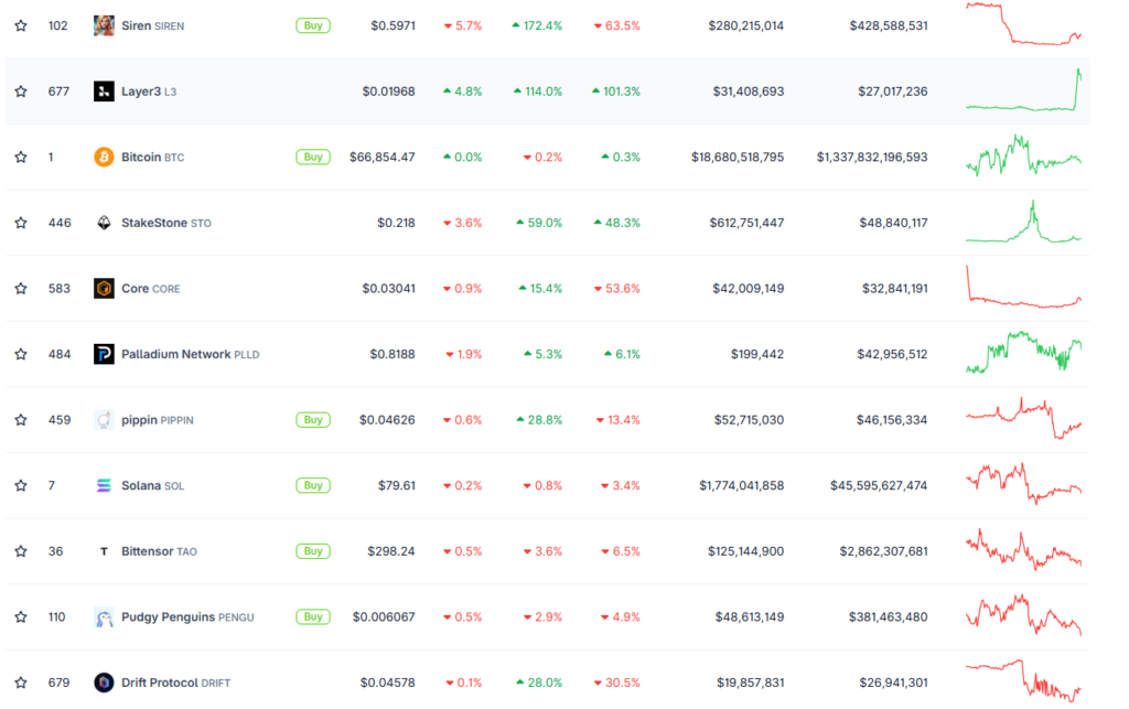 Zirvedekiler: SIREN, Layer3 (L3) ve Bitcoin (BTC)