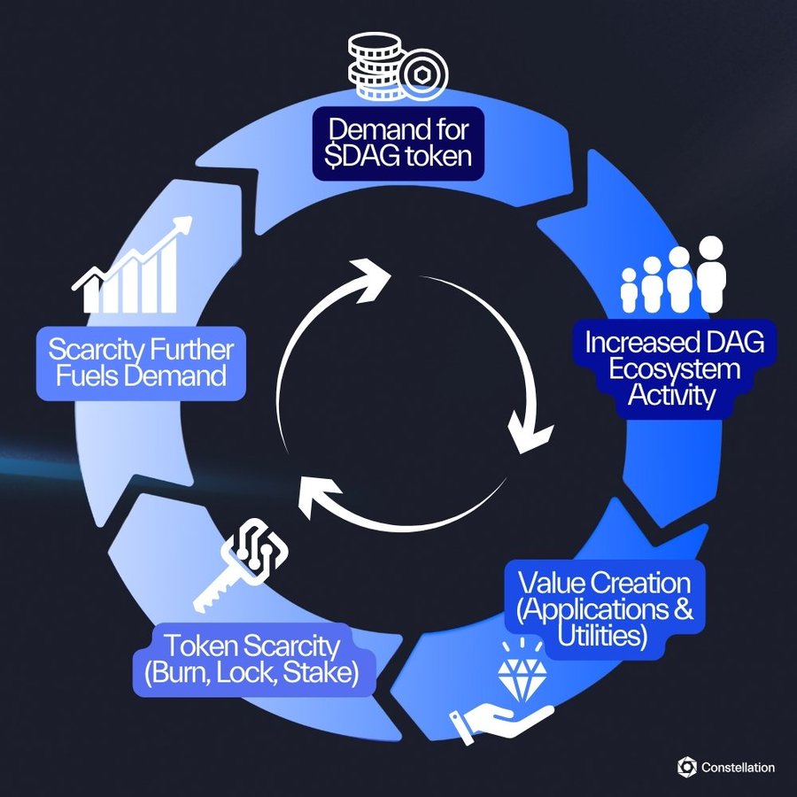 - Ekosistem Teşvikleri: Geliştirici hibeleri, pazarlama girişimleri ve topluluk ödülleri $DAG ile finanse edilir.