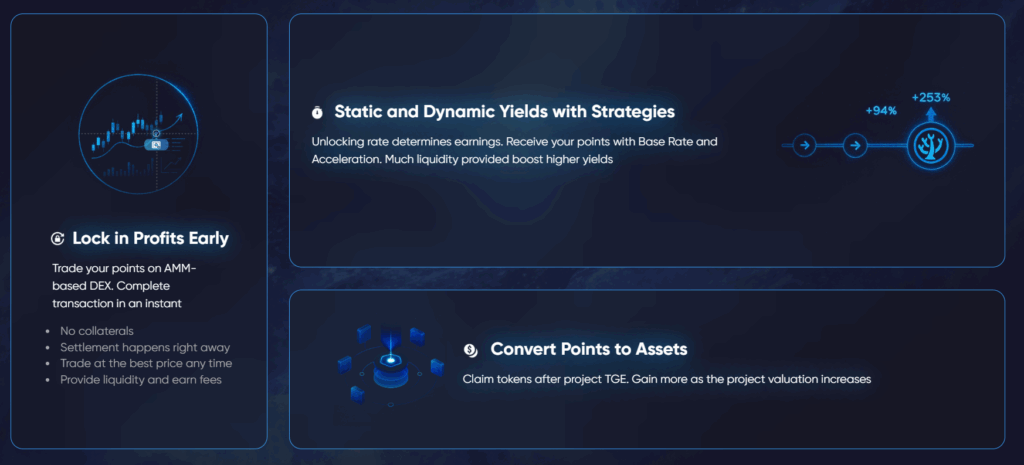 - Pre-market varlıklar için likidite sağlama: Kullanıcılar, erken dönem projelere yatırım yaparak likidite sağlayabilirler.