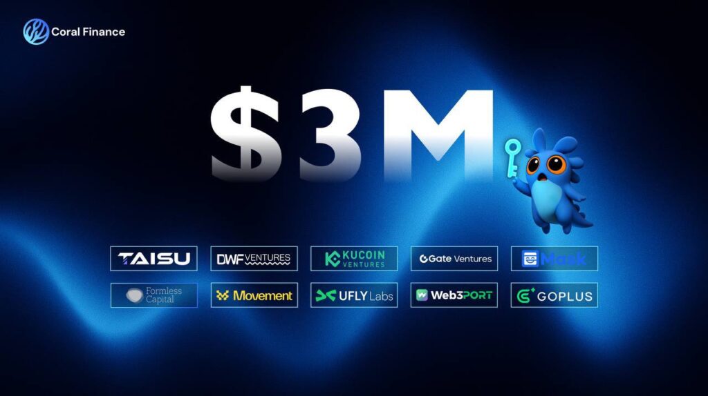 Coral Finance, toplam 3 milyon USD fon toplamış olup, TAISU, DWF Ventures, KuCoin Ventures, Gate Ventures, Mark, Formless Capital, Movement, XUFLY Labs, Web3PORT ve Goplus gibi önemli yatırımcılar tarafından desteklenmektedir. Ayrıca, Avalon Labs, KiloEx, Honeypot Finance, UXLink, Meridian ve Lumoz gibi stratejik partnerlerle iş birliği yapmaktadır.