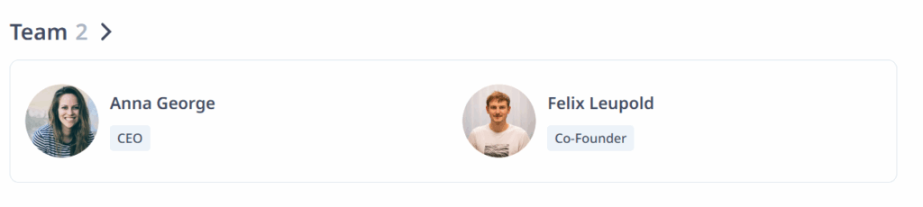 - Anna George CEO & Kurucu Ortak : 2022 yılından itibaren bu görevde bulunmaktadır. Daha önce Gnosis’te Asya-Pasifik bölge yöneticiliği ve iş geliştirme liderliği yapmıştır. Ayrıca Birleşmiş Milletler Kalkınma Programı ve Alman Uluslararası İşbirliği Kurumu (GIZ) gibi kuruluşlarda da görev almıştır.