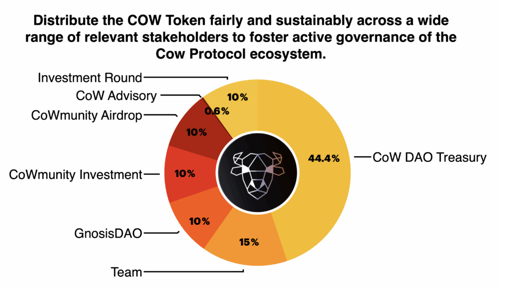 - CoW DAO Hazinesi (%44,4): Protokolün uzun vadeli gelişimi ve yönetişimi için topluluğun kontrolündedir.