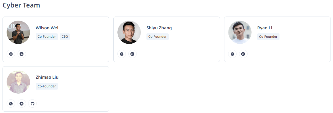 Cyber, güçlü bir yatırımcı portföyüne sahiptir: Animoca Brands, The Spartan Group, Delphi Ventures, IOSG Ventures, Amber Group, Tribe Capital, Polygon Studios, Sky9 Capital, SevenX Ventures, Protocol Labs, GGV Capital, Multicoin Capital, Hashed, Mask Network, Draper Dragon, Smrti Lab, Zoo Capital.