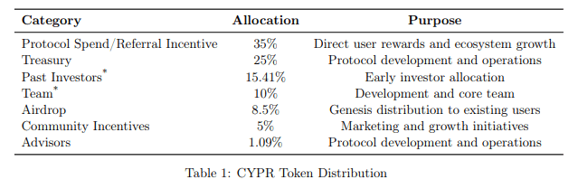- Yönetişim: $CYPR ile emisyon yönlendirme ve DAO oylaması.