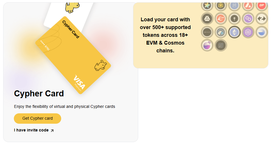- Cypher Kart’ı alın, 500+ token ile yükleyin.