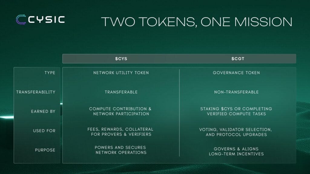Cysic’in yönetişim modeli, çift token yapısının bir parçasıdır:
