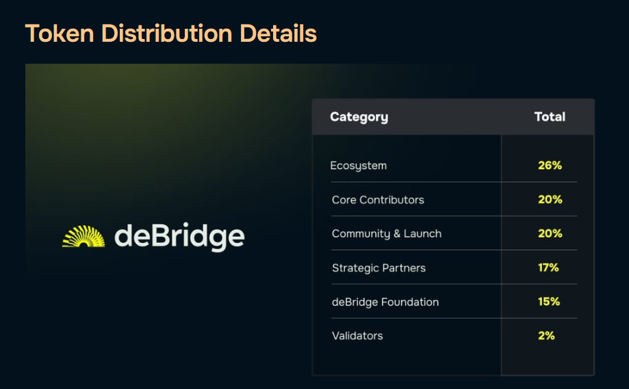 - deBridge Foundation – %15 (1.5B DBR)