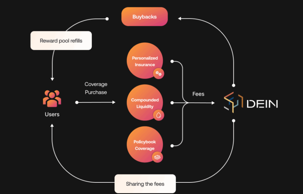 Kullanıcılar sigorta ürünlerini kullandıkça ücretler protokole akar. Bu ücretlerin bir kısmı piyasadan DEIN token’ı geri almak için, diğer kısmı ise ödül havuzunu doldurmak ve katılımcıları teşvik etmek için kullanılır.