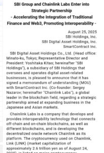 Japonya’nın en büyük finans devlerinden biri olan ve 200 milyar doları aşkın varlığı yöneten SBI Group, blockchain ekosisteminin lider oracle ağı Chainlink ile stratejik bir ortaklık kurduğunu duyurdu.