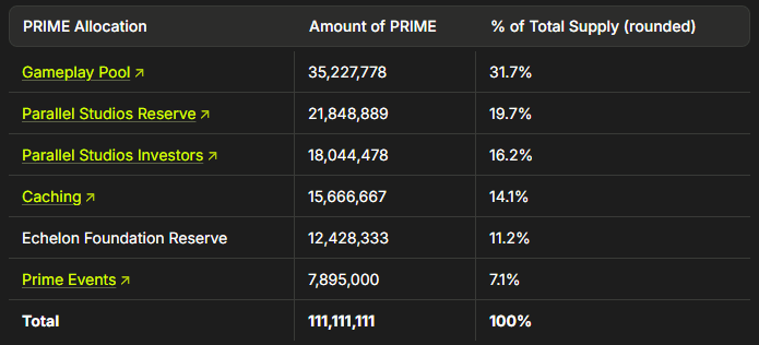 Echelon Prime (PRIME) Tokenomik Yapısı