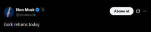 Elon Musk’tan “Gork Bugün Geri Dönüyor” Paylaşımı