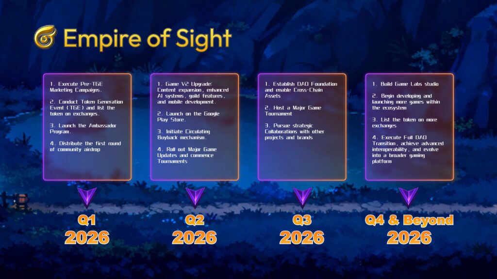 TGE yapılacak, $SIGHT borsalarda listelenecek, topluluk büyümesi için elçi programı ve ilk airdrop gerçekleştirilecek.
