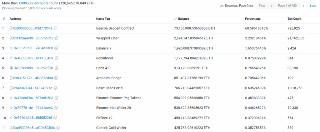 En Büyük 10 Ethereum Sahibi: Hangi Cüzdanlarda Ne Kadar ETH Var?