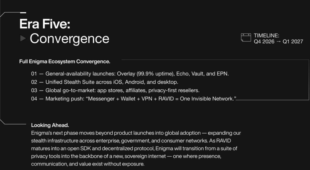 Enigma’nın beşinci dönemi olan “Convergence”, ekosistemin tam anlamıyla birleşmesini hedefleyen şu adımlardan oluşur: