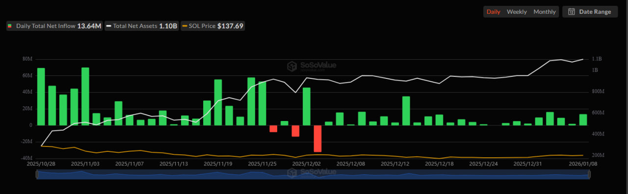 Piyasanın genelindeki temkinli havaya rağmen spot Solana ETF’lerinde 13,64 milyon dolarlık net giriş kaydedildi. Bu durum, Solana ekosistemine yönelik beklentilerin güçlendiğini gösteriyor. Ağ üzerindeki artan kullanım, DeFi ve NFT projelerindeki hareketlilik, yatırımcı güvenini destekleyen unsurlar arasında yer alıyor. Solana’nın teknolojik altyapısı ve ölçeklenebilirlik avantajı, özellikle alternatif kripto varlıklara yönelen fonların ilgisini çekmeye devam ediyor.